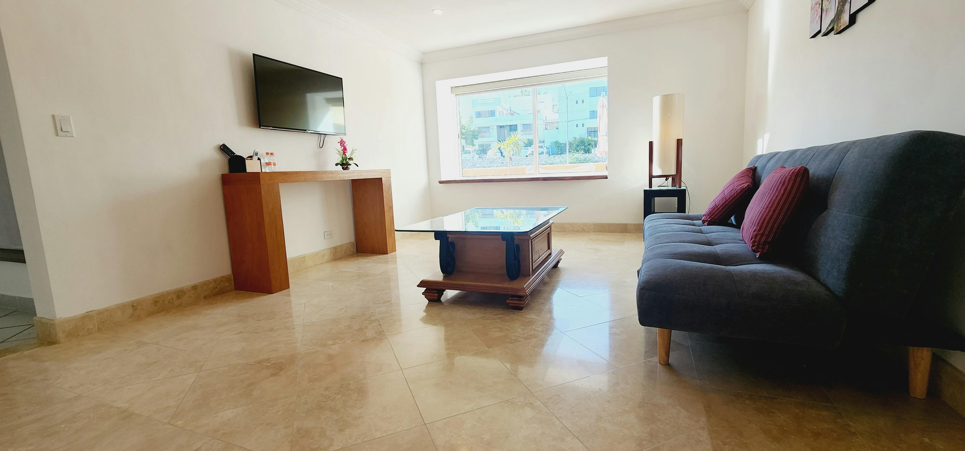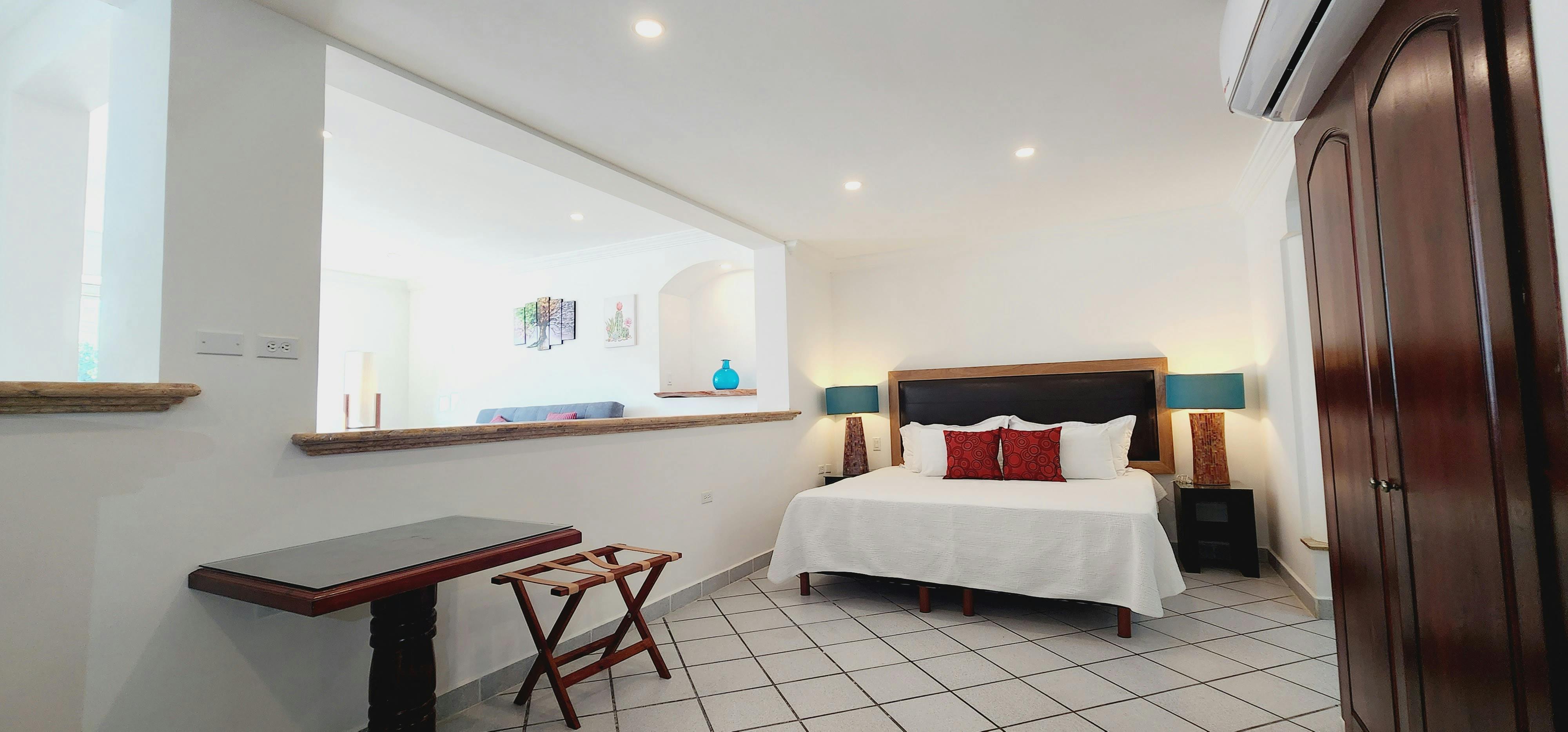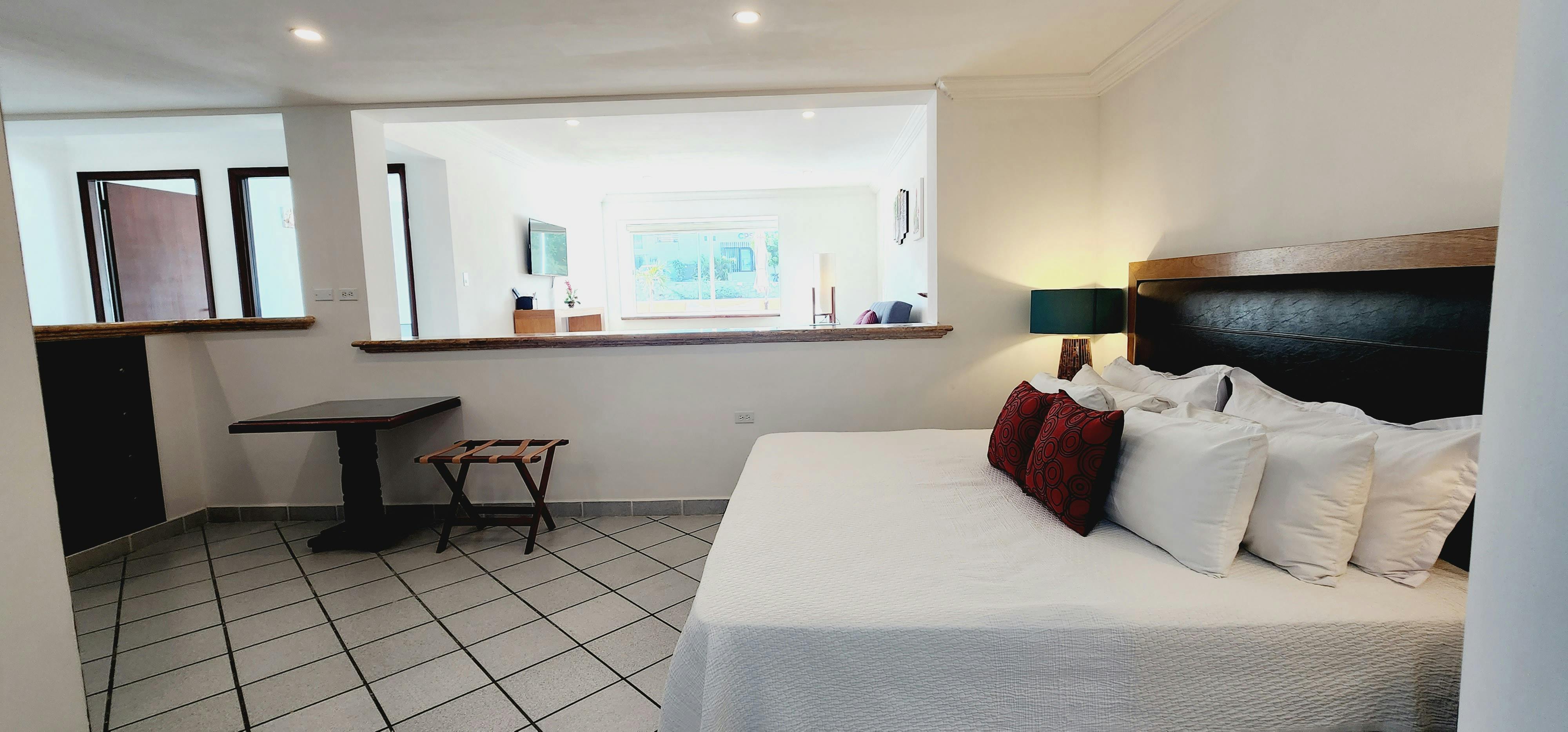 “Gran Habitacion con una cama King Size, área de televisión y un cuarto privado para trabajar, excelente para aquella persona que viene de negocios con su familia”